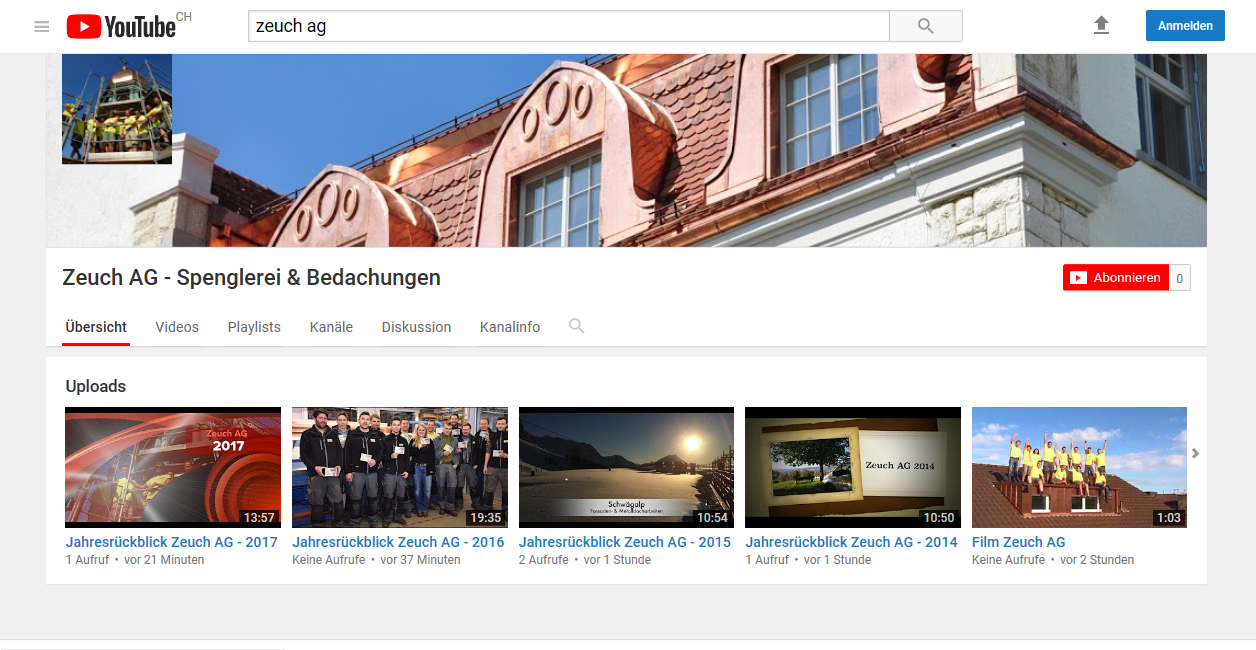 Zeuch AG - Spenglerei & Bedachungen gibt es jetzt auch auf YouTube